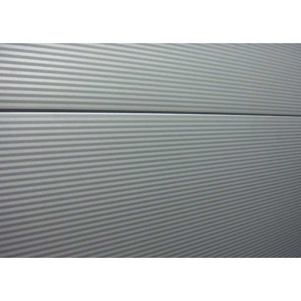 Deze deur heeft een geheel eigentijdse uitstraling. Het is een modern paneel met een micro line relief, wat neer komt op een golf beweging. De buitenzijde is verder glad, dus zonder relief. Deze uitstraling is zeer modern en op veler verzoek ook alleen leverbaar in de kleur RAL 9006. Deze deur kunt u ook nog luxer maken door hem in dezelfde kleur te spuiten als bijvoorbeeld de voordeur van uw huis.