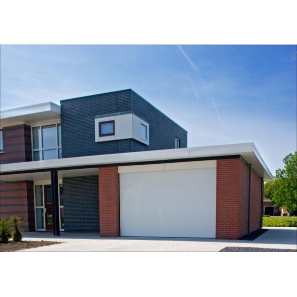 Deze 40 mm dikke geïsoleerde garagedeur is uitgevoerd zonder horizontale belijning maar is wel voorzien van woodgrain structuur. Bij deze uitvoering lijkt het alsof de garagedeur uit grote brede planken is opgebouwd. Deze garagedeur wordt door zijn moderne uiterlijk vooral toegepast in woningen met een eigentijdse architectuur. Standaard wordt deze garagedeur uitgevoerd in de kleur wit. Natuurlijk is het mogelijk om uw garagedeur in de kleur te laten spuiten die u wenst.